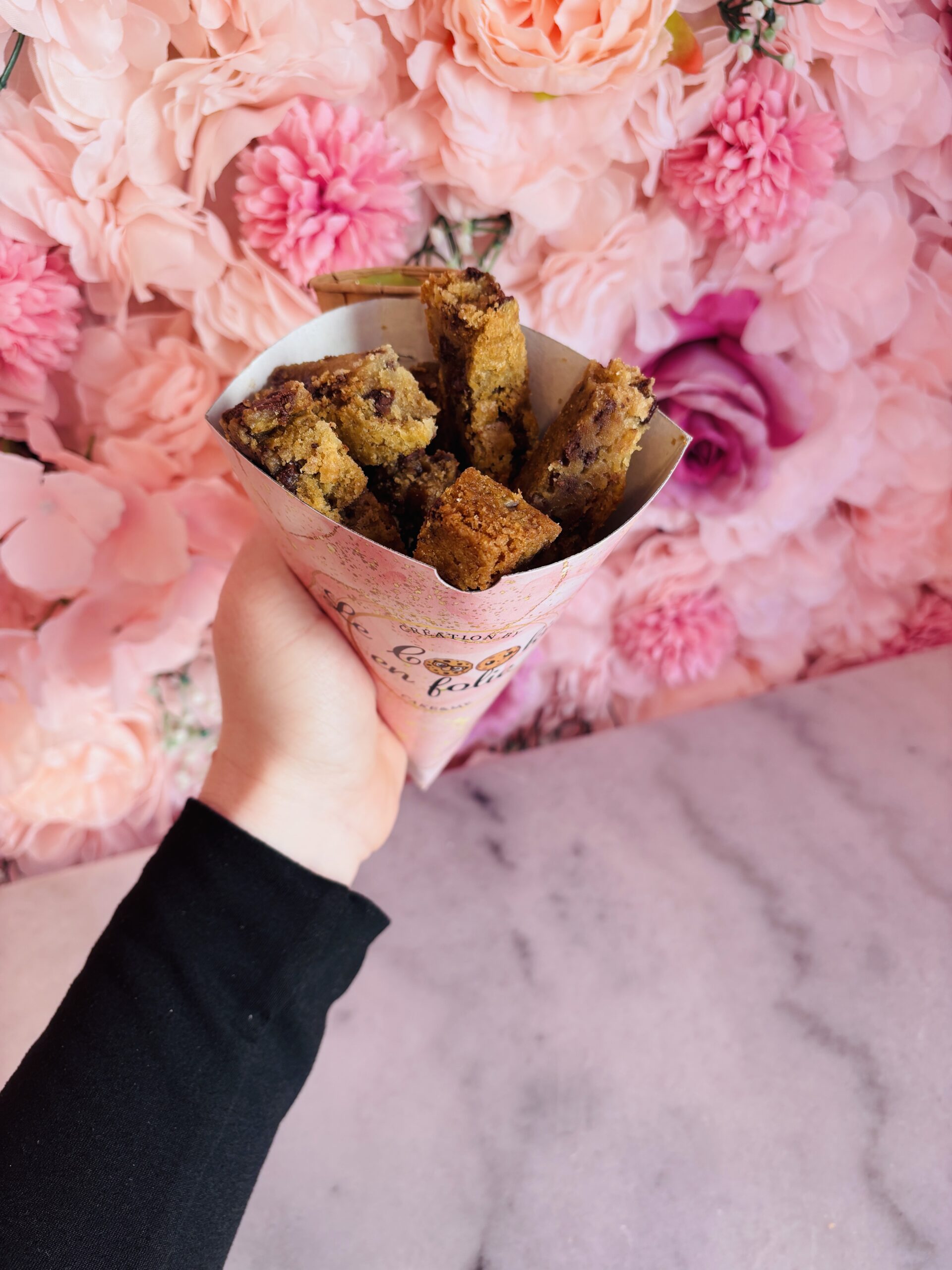 • Pâte à cookie maison • Pépites de chocolat noir • Beurre AOP 82% • Arome Vanille pur • Fleur de sel de Guérande