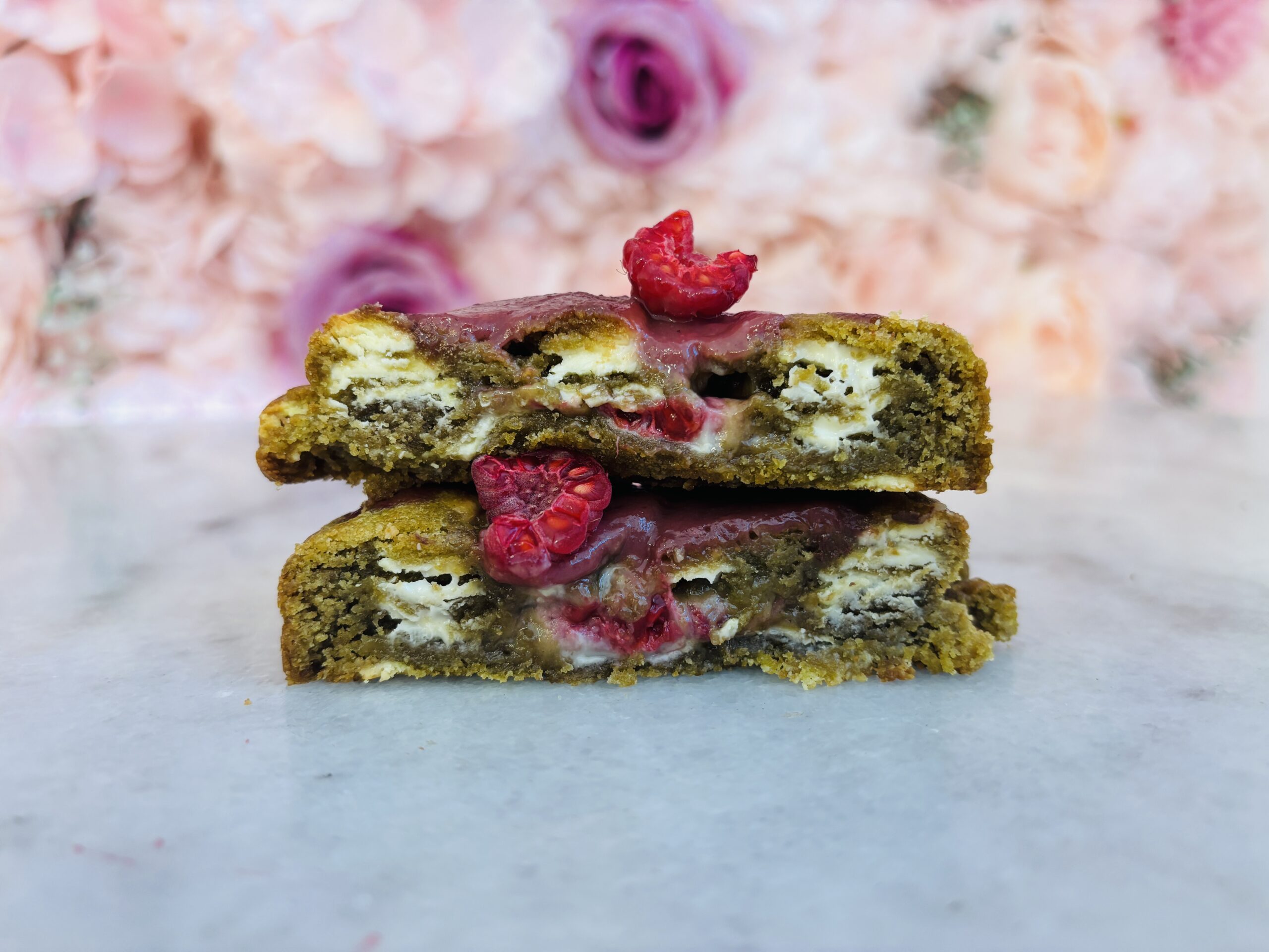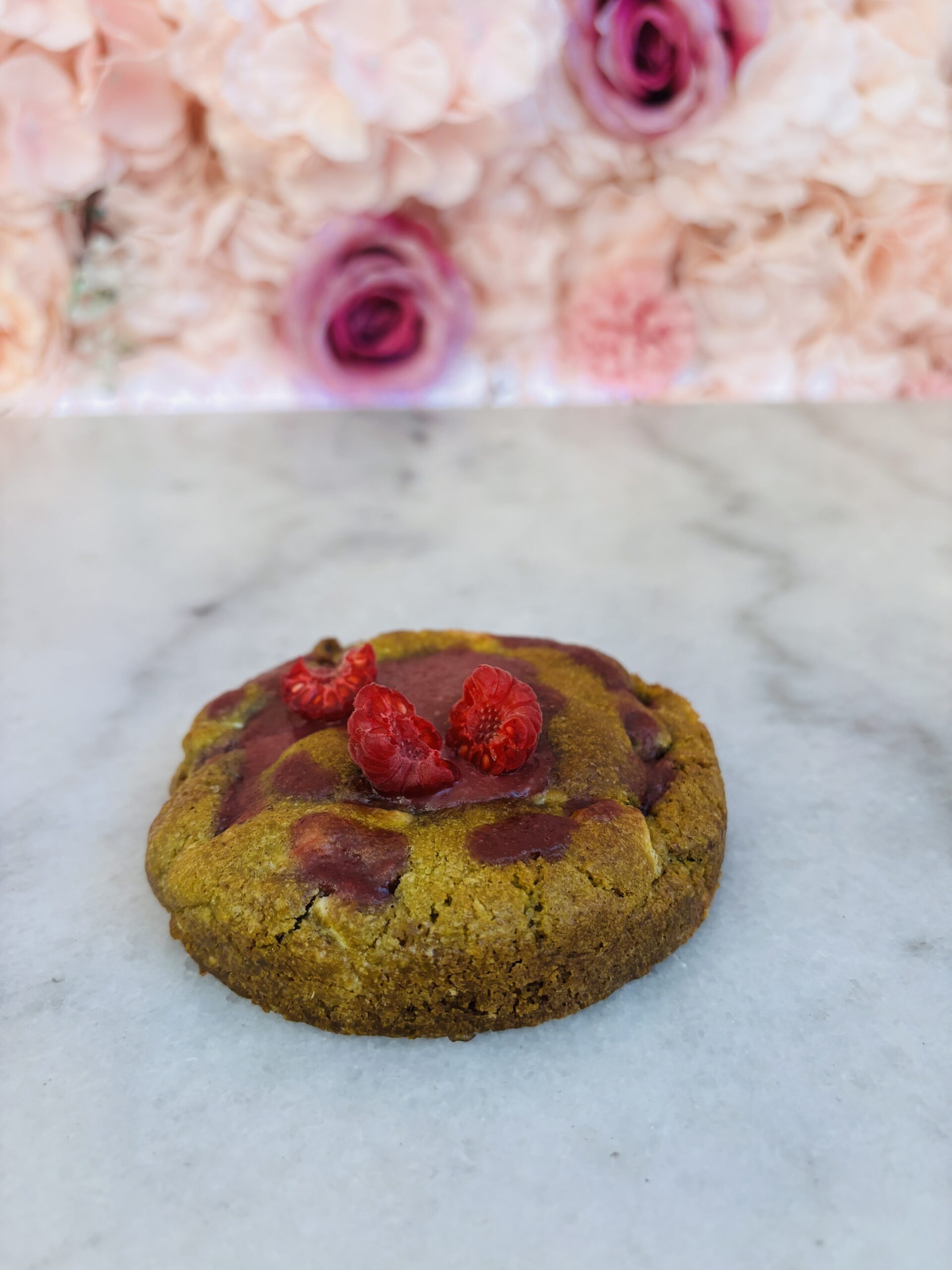 Le parfum délicat du thé Matcha sublimé par les pépites de chocolat noir, agrémenté par la gourmandise acidulé de la framboise.