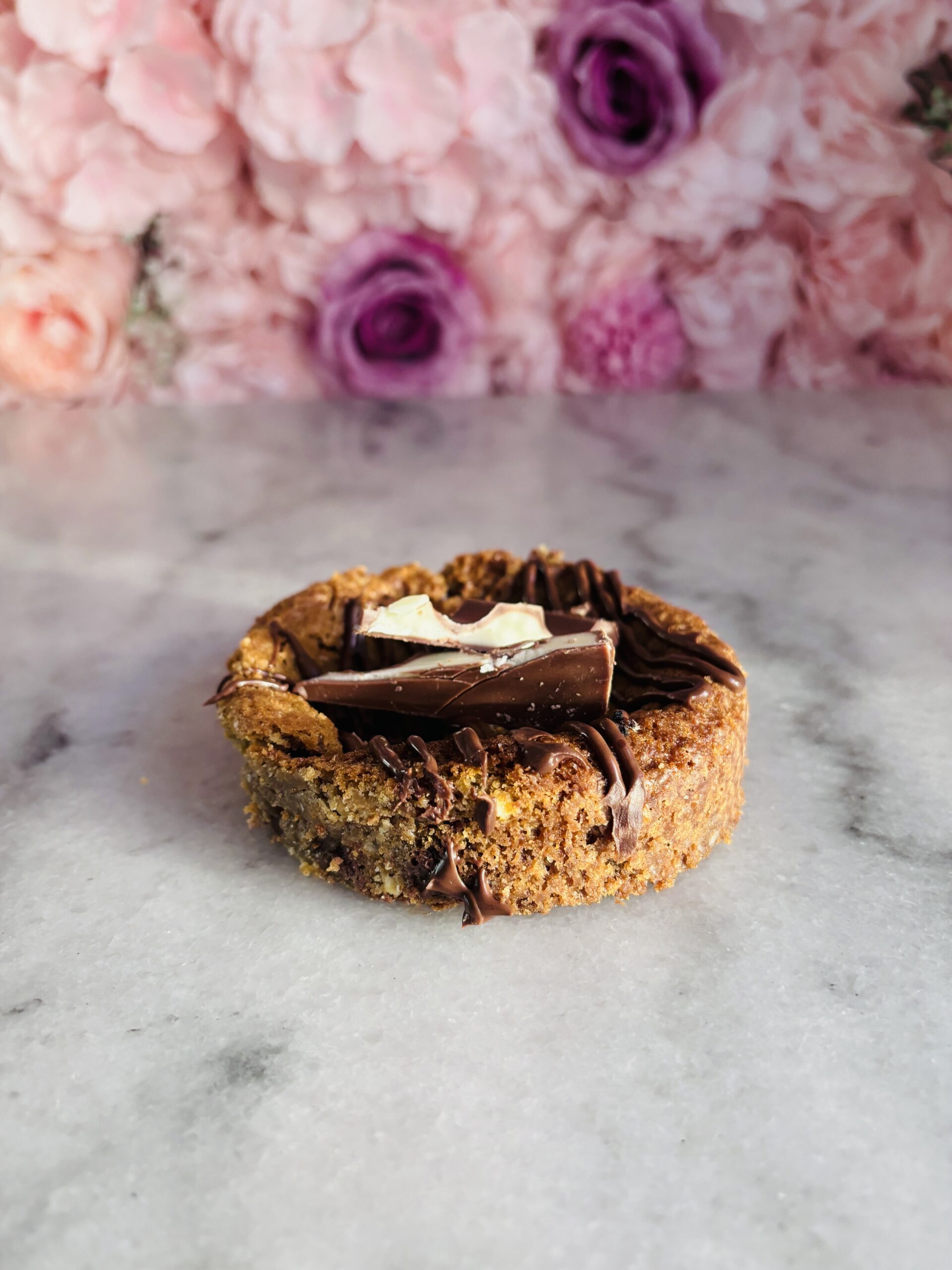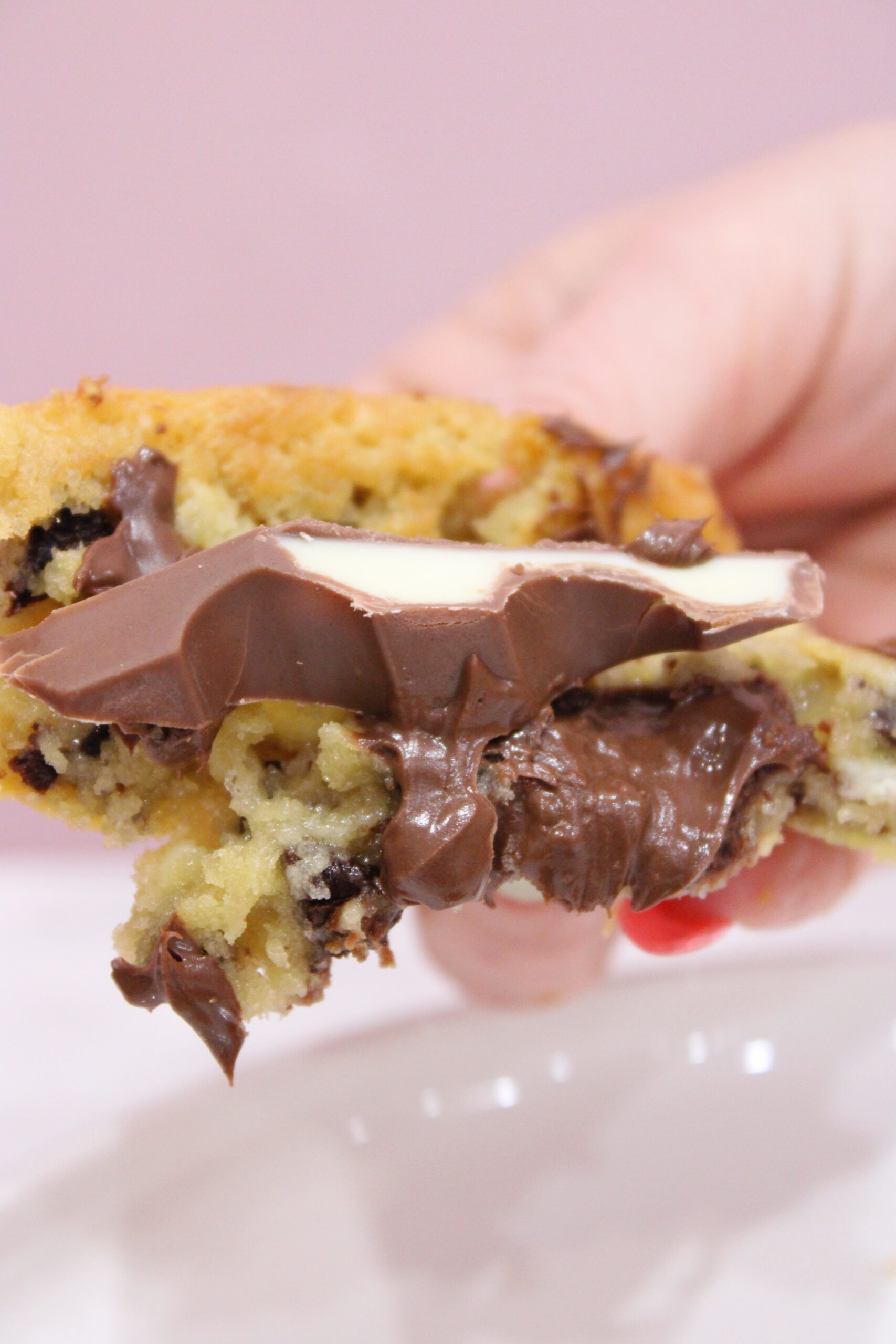 Ingrédients clés : Farine, beurre AOP, mélanges de sucres, Oeufs frais plein air, Kinder® maxi, Nutella®, pépites lait/blanc, sel Guérande, vanille.